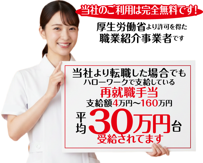 また、当社ご紹介により気になる施設に転職した際も受給要件対象者の方は再就職手当の対象となります